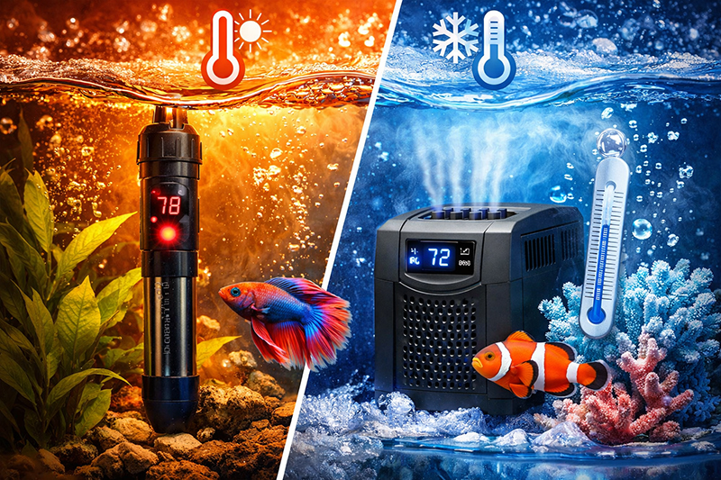 Overheating can be just as dangerous as cold water — particularly in summer or for marine aquariums with lighting and equipment that generate extra heat.